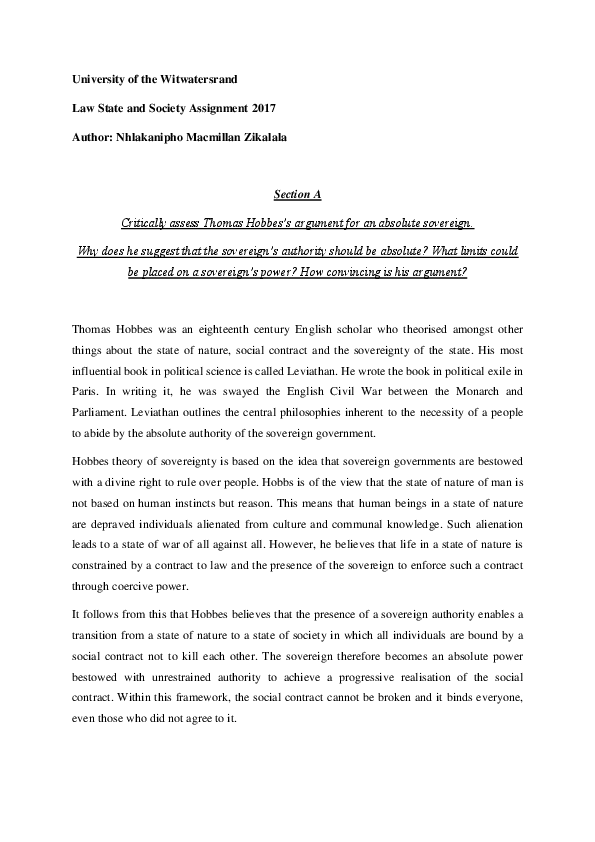 Pdf Thomas Hobbes S Leviathan Theory The French Revolution Socio Economic Rights Macmillan Zikalala Academia Edu